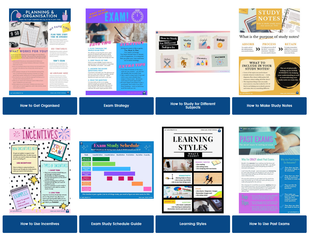 They don’t know where to start: If your teen doesn’t know where to start, you can help them make a plan. I would start by making a plan for an ordinary school week. Set aside some time (it doesn’t need to be hours and hours) to complete homework, keep on top of assignments, and do a bit of study here and there to make sure they’re keeping on top of what’s happening in class (this is going to make exam study a million times easier).