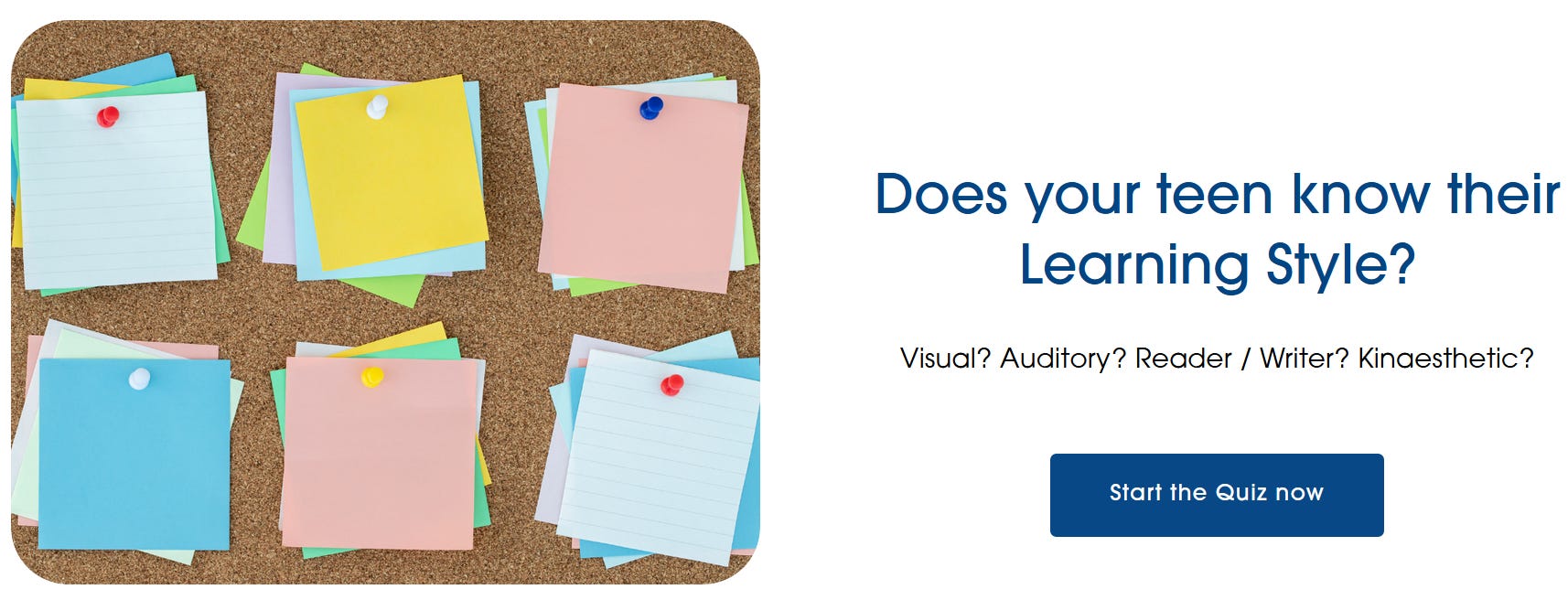 You can also share my free Learning Styles Quiz with them so they can find out what study techniques are more likely to work for them. If your teen does those two things, in less than an hour they will be well on their way to figuring out how to study in a way that works for them.